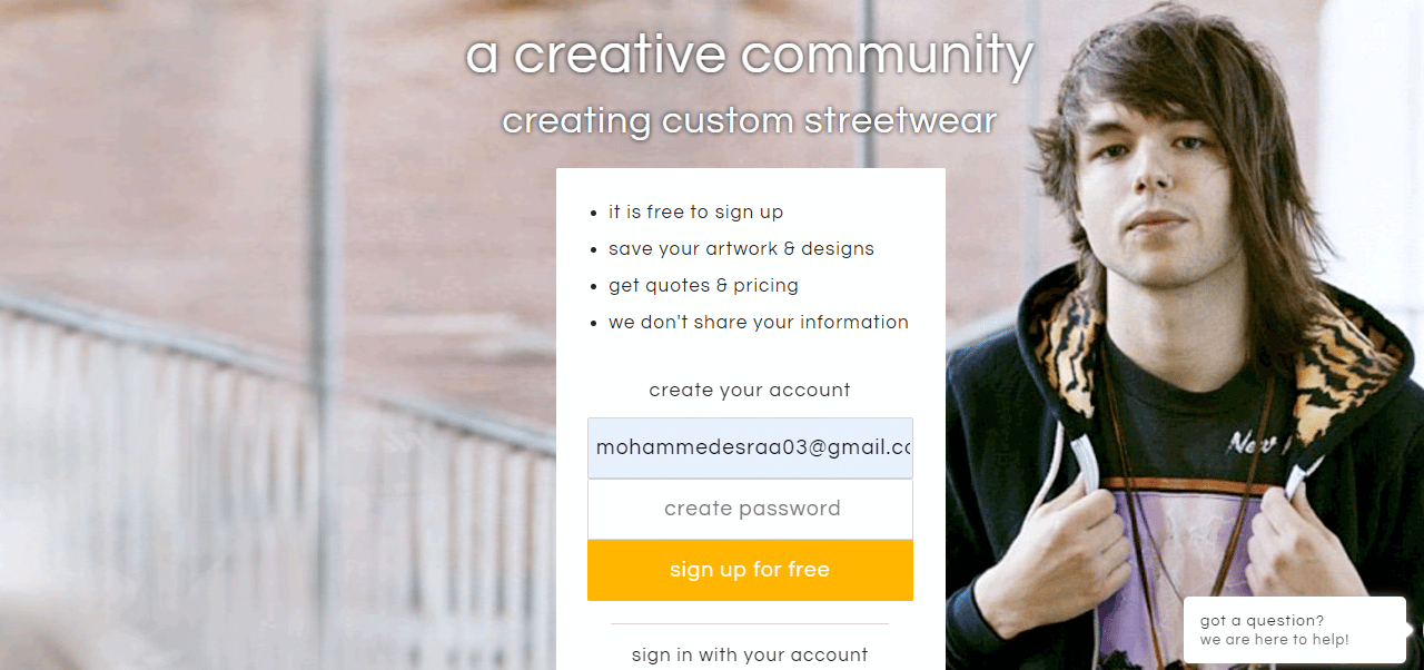 - الخطوة الرابعة: في خانة enter your account أدخل بريد إلكتروني مناسب للتسجيل يمكنك استخدم حساب جوجل أو الجيميل أو يمكنك استخدام الهوت ميل أو الياهو ميل.